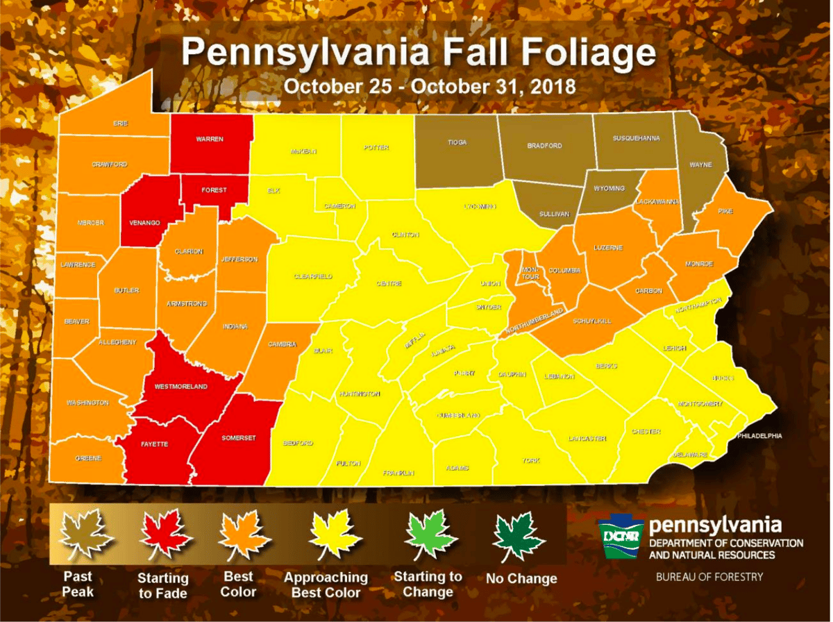 The Pennsylvania Department of Conservation and Natural Resources has been testing a new fall foliage map this year, with the latest release showing that Lebanon County is approaching the period of the best color.