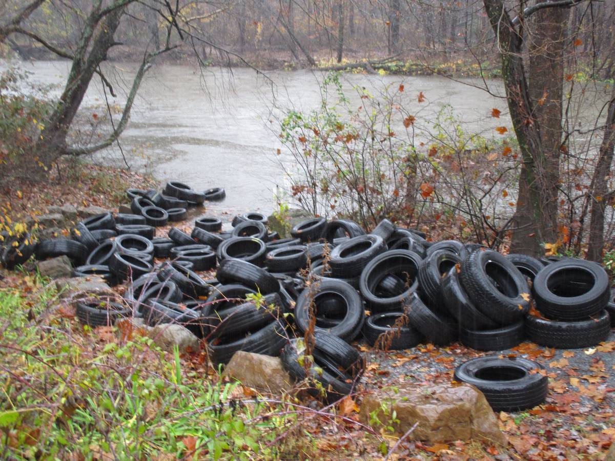 Officials at Swatara State Park shared a photo of an illegal dumping of over 100 tires at the Lickdale Trailhead Boat Launch of the Swatara Creek.