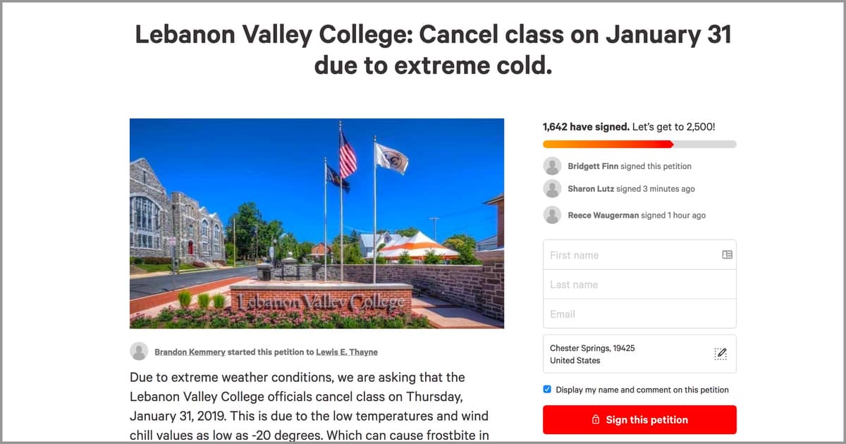 LVC student petition to cancel classes over cold draws more than 1,600 signatures, but classes still held