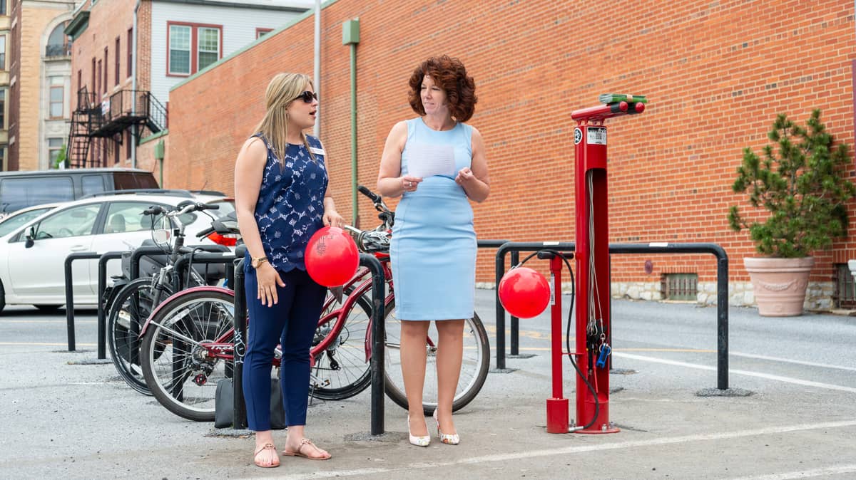 A new bicycle pump and repair station opened to the public outside the Lebanon Farmers Market this past Friday, May 17th.