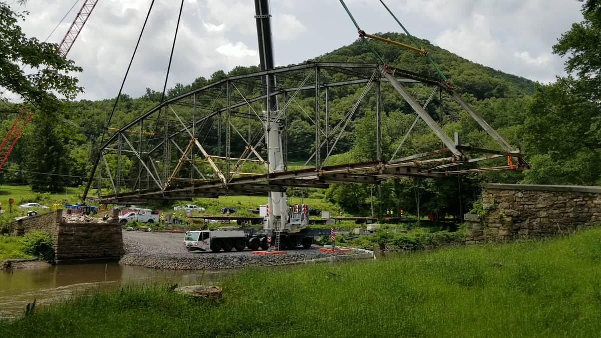 Historic Inwood Bridge off the Swatara, being readied for new placement