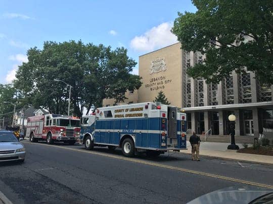 The Lebanon County and City Municipal Building at 400 S. Eighth St. was evacuated briefly on Monday afternoon.