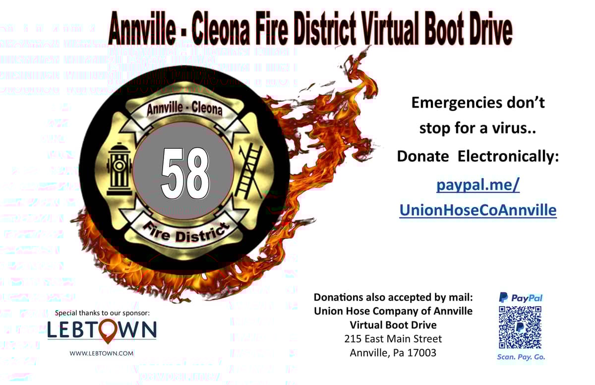 Having already had to cancel two fundraising events so far this year, the Annville-Cleona Fire District is facing a financial shortfall and raising money through a Virtual Boot Drive.