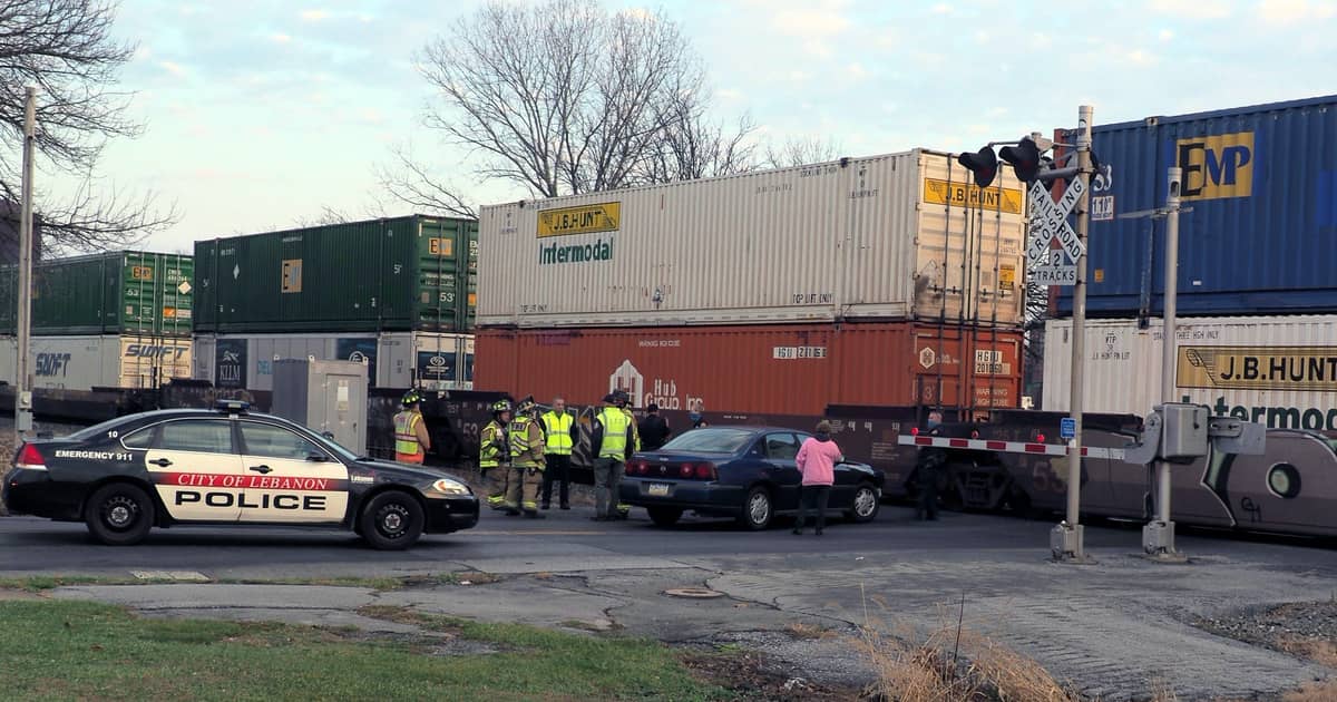 A driver escaped injury Saturday afternoon when her car was struck by an eastbound Norfolk Southern freight train at the Lincoln Avenue railroad crossing in Lebanon.