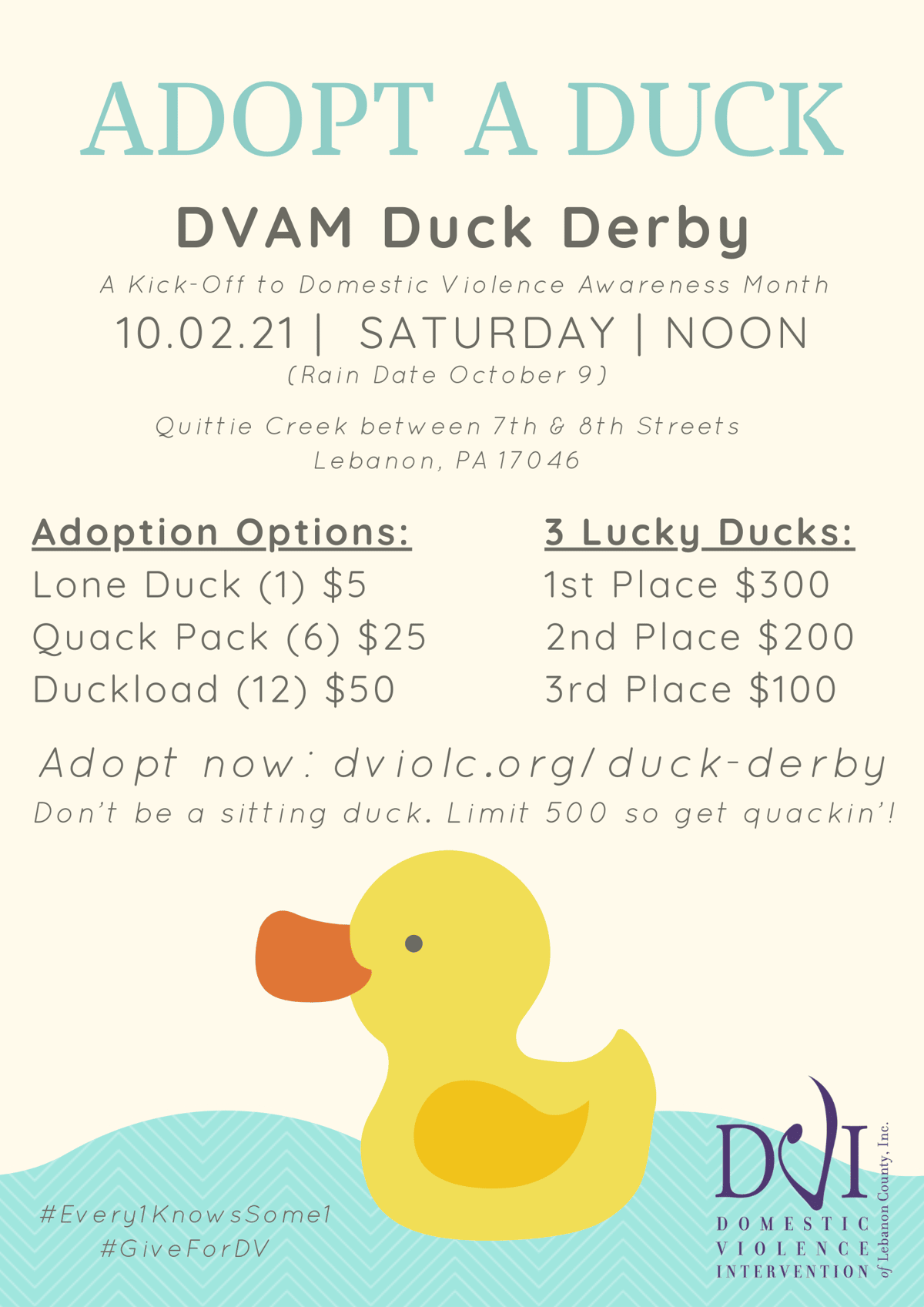 DVI of Lebanon County kicks off #Every1KnowsSome1 domestic violence awareness campaign with Duck Derby Oct. 2 [Paid Press Release]