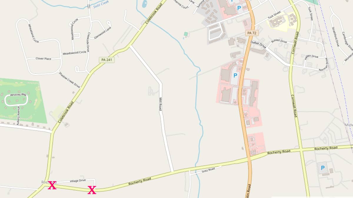 Rocherty Road remains open for local traffic between Route 72 and Village Drive at the village of Rocherty, but can’t be accessed from Colebrook Road at the west end.