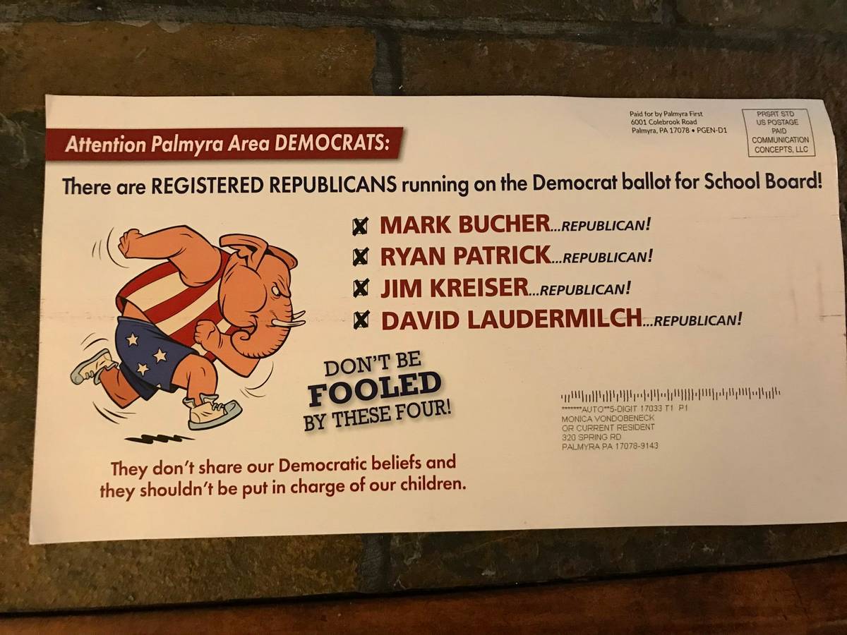 Republicans in Lebanon County are pretending to be Democrats in order to send fake and misleading information to Democratic voters in the Palmyra Area School District.