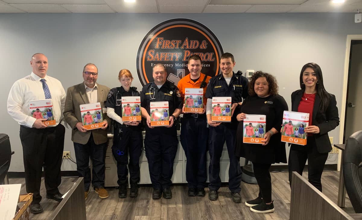 As part of the American Heart Association’s annual Lebanon Heart Ball, First Aid and Safety Patrol received a donation of 20 CPR Anytime training kits from Orthopedic Associates of Lancaster.