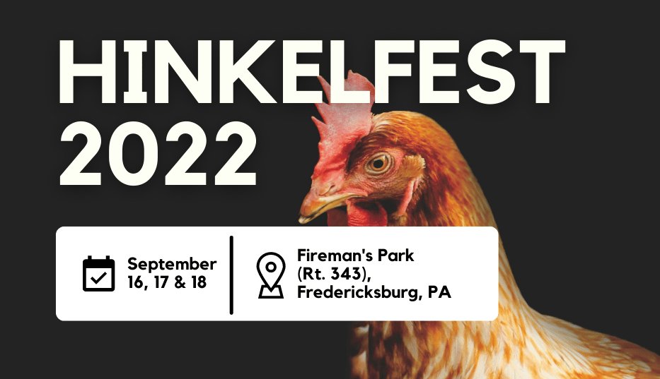 Hinkelfest 2022, Lebanon County’s annual three-day celebration of all things chicken, kicks off on Friday, Sept. 16 at Fredericksburg Fireman’s Park on Route 343 (N. 7th Street) between Lebanon and Fredericksburg.
