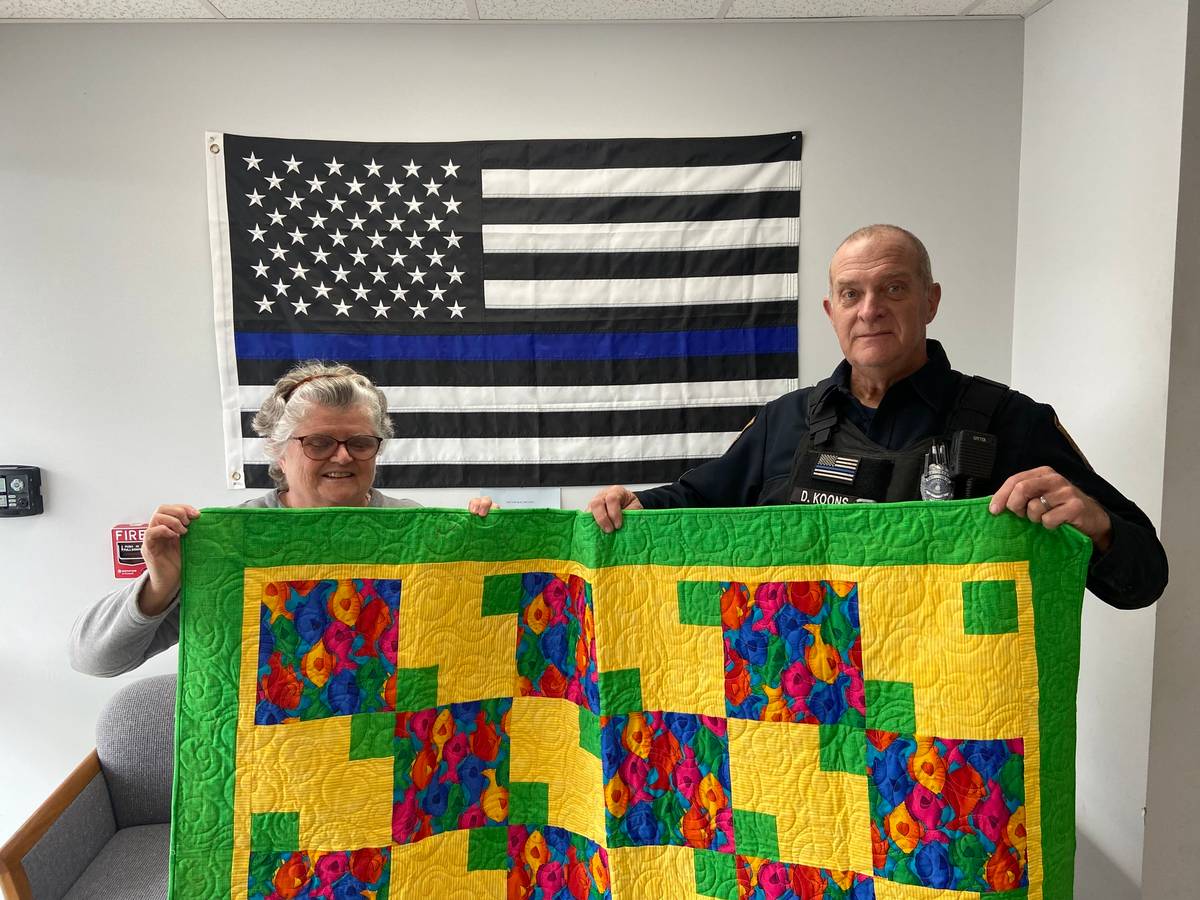 She’s donated so many quilts over the years to DVI that she wondered if maybe there were other organizations who might be interested in having some. Davis, who lives about a mile and a half from the NLTPD station, said that she reached out to the department a couple weeks ago weeks and it was an immediate “yes” on their part.