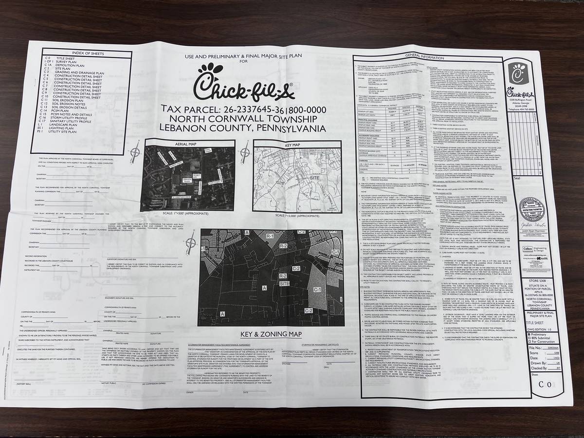 Chick-fil-A has submitted a land development plan for what would be the Georgia company’s first franchise in Lebanon County, to be located at 1147 Quentin Road.