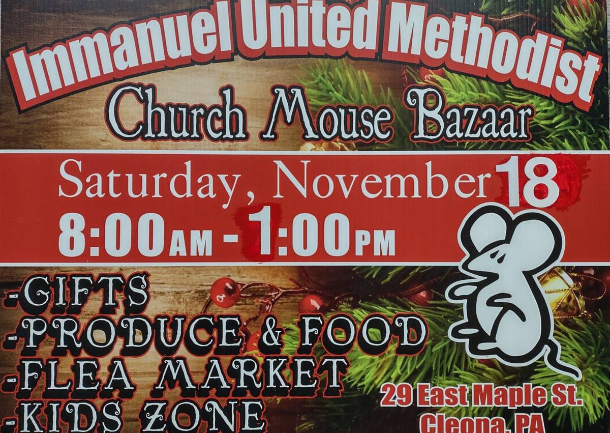 The Immanuel United Methodist Church of Cleona is hosting its 40th Church Mouse Bazaar from 8 a.m. to 1 p.m. Saturday, Nov. 18.