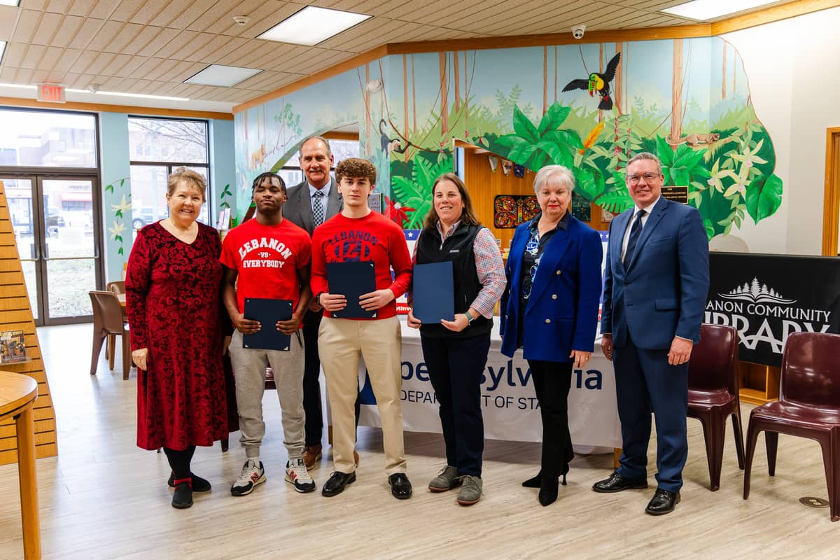 Schmidt presented proclamations to three local poll workers: Megan Schaeffer of Jackson Township and Lebanon High School students Jack Herr and Jahkeim Medlock. Medlock was interviewed last November as part of LebTown’s Election Day real-time coverage as one of 11 Lebanon High School students who worked the polls.