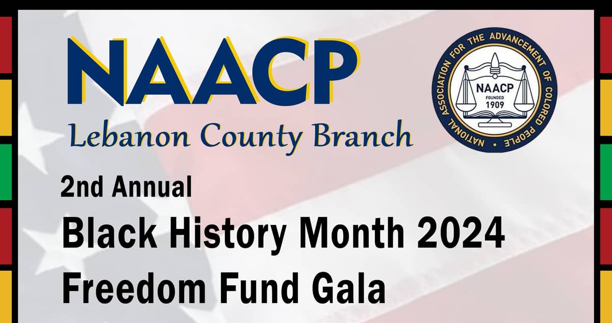 The Lebanon County branch of the National Association for the Advancement of Colored People will host its annual Black History Month Freedom Fund Gala from 6 to 9 p.m. on Saturday, Feb. 24 in the second-floor ballroom of the WEPA Empowerment Center at 9 S. 9th St., Lebanon.