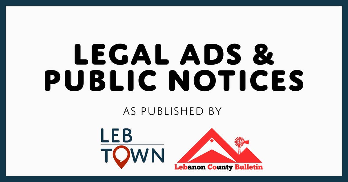Here are the latest legal ads and public notices published by LebTown and LebCo Bulletin for the week of March 25.
