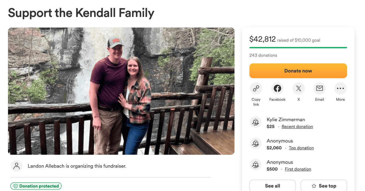 Fundraiser started for family of Bryan Kendall sees tremendous response