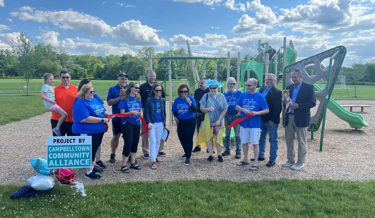 The Campbelltown Community Park playground, which was built by volunteers organized by the Campbelltown Community Alliance in late October, got its official kickoff May 30 with a dedication ceremony and ribbon-cutting.