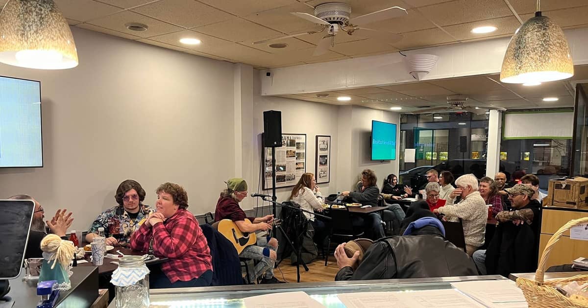 On the third Saturday of every month, with some exceptions, the open mic night starts at 6 p.m. and ends at 8, with an impromptu jam session often extending into the evening hours.