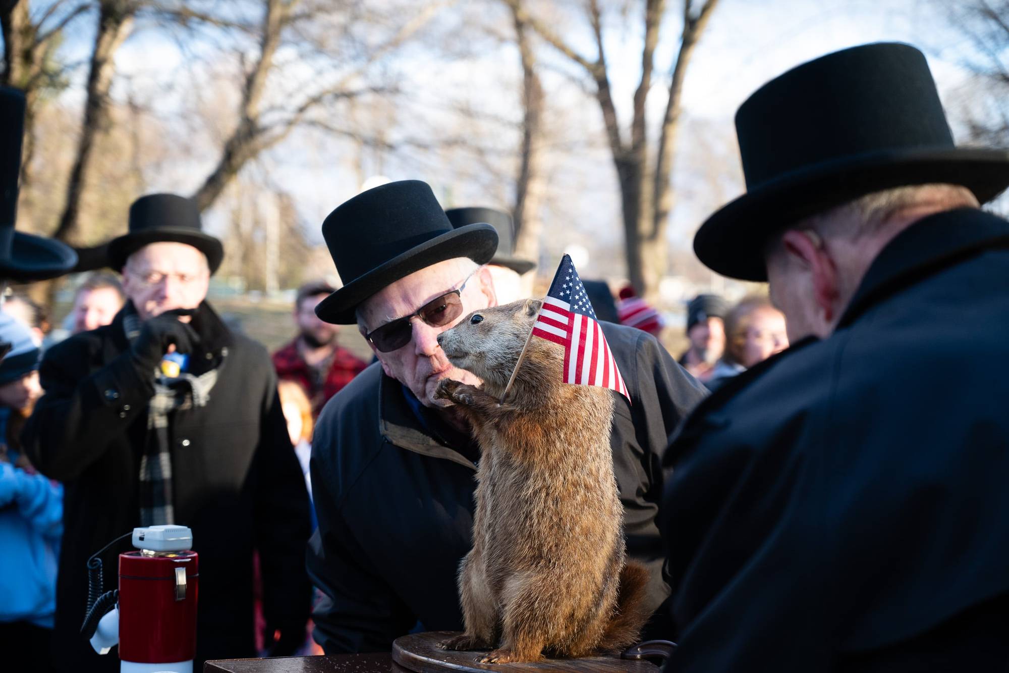 Fittingly, the forecast is delivered yearly first in Pennsylvania Dutch, and then translated for the rest of us. Uni’s forecast was first delivered and shared in Pennsylvania Dutch by lodge member Donald Hickernell, the designated Uni whisperer for this year’s event. Hickernell also translated the marmot’s meteorological outlook into English.