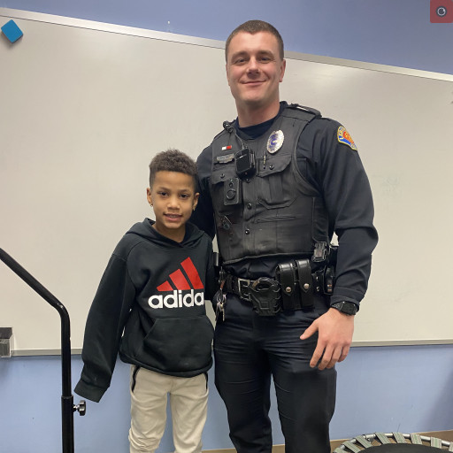 Pictured below is “Big in Blue Officer” Joe Ginder and little brother Felix. Felix is a second-grade student who wants to be a police officer like his new “Big Brother.” They are excited to “shoot hoops” outside and work on math assignments together.