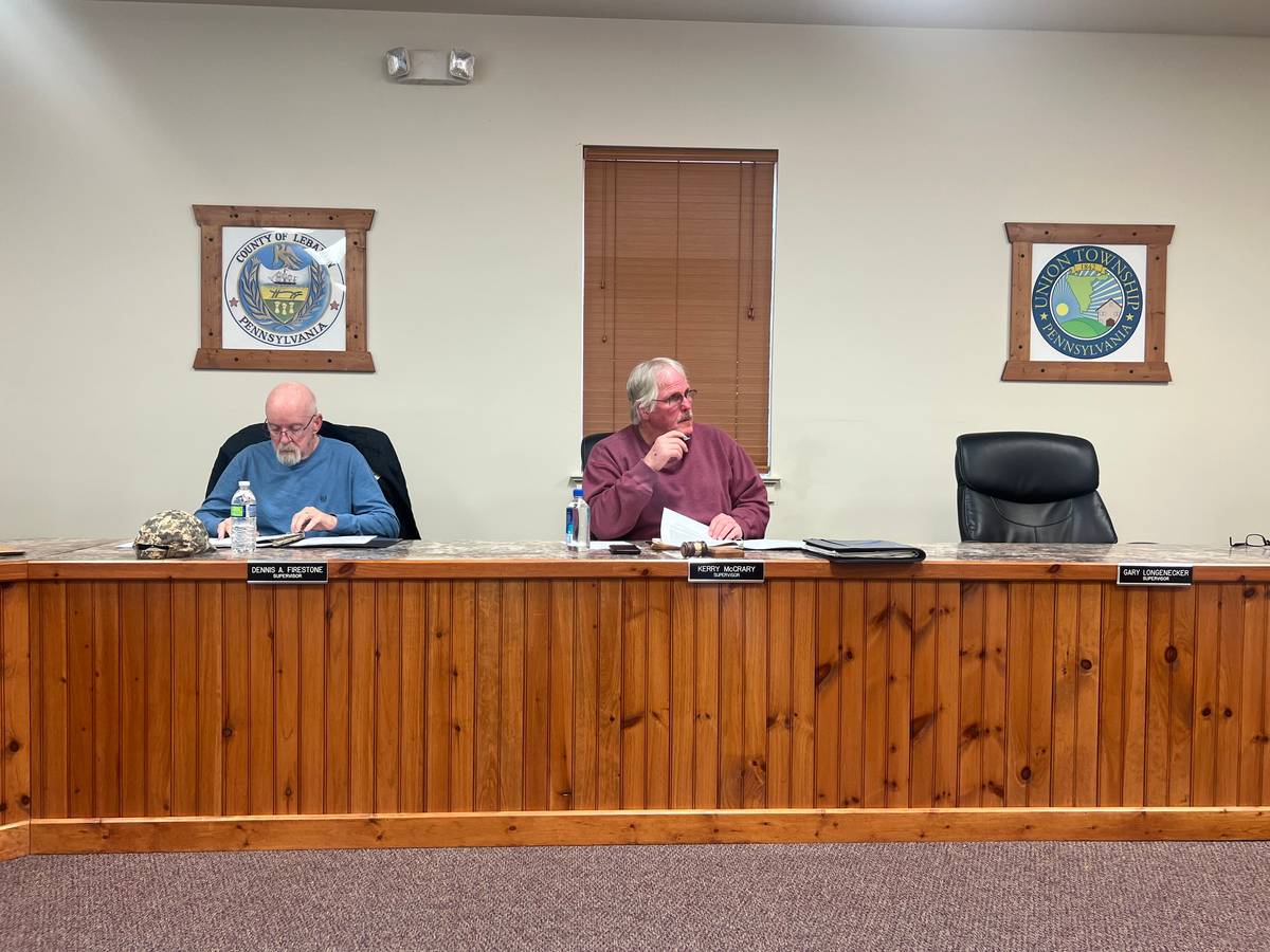 The Union Township Board of Supervisors will have its next regular monthly meeting at 3111 PA-72 on April 9 after the 6:30 p.m. sewer meeting.