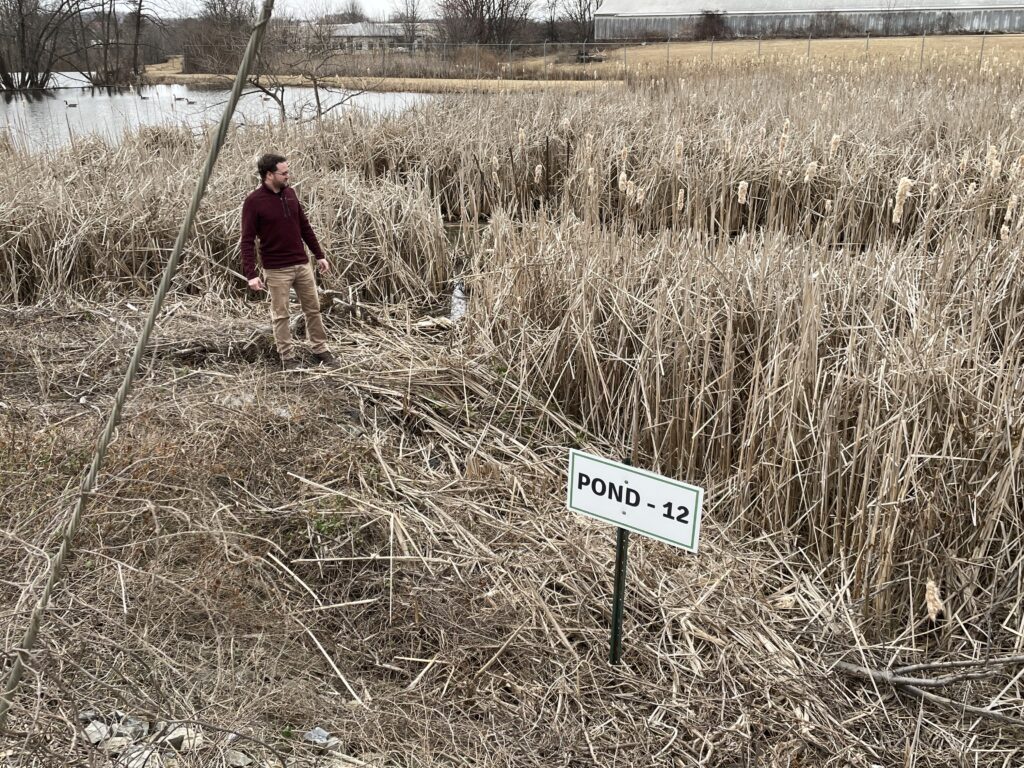 While the pump is working, Zechman measures the pond water’s pH, temperature, dissolved oxygen and total dissolved solids — all indicators of water quality.