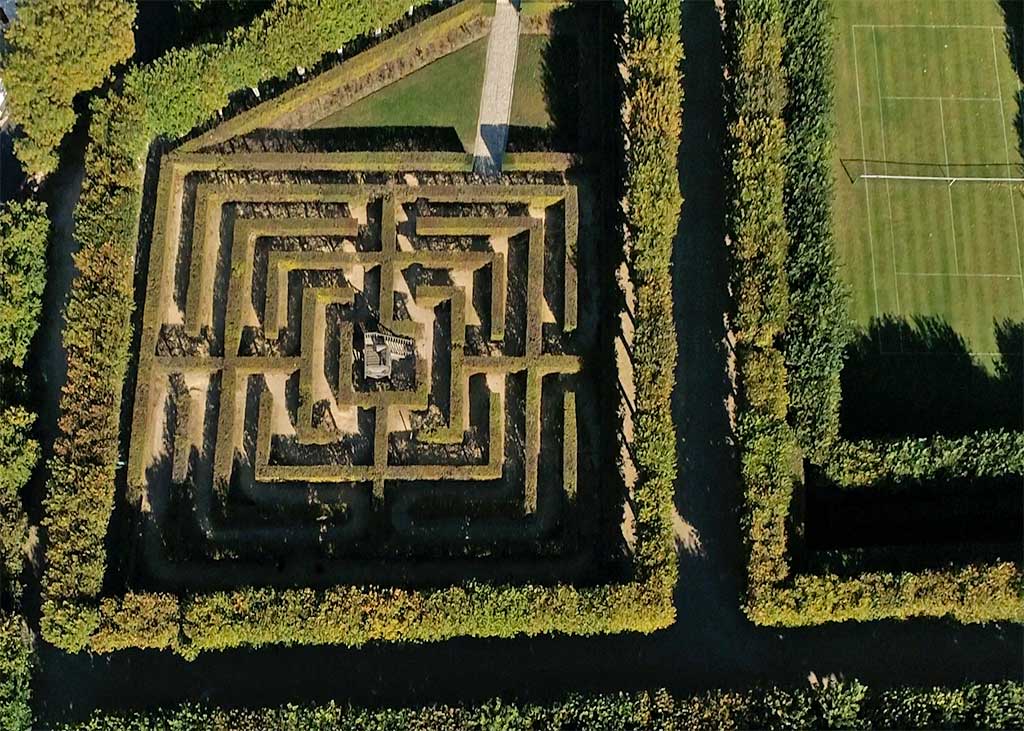 Today, six gardens make up the estate, surrounded by a wood. The first three gardens were the Decorative Vegetable Garden, the Ornamental Rooms, and the Water Garden. Later, they were joined by the Herb Garden, the Maze, and the Sun Garden. Villandry employs 10 full-time gardeners; 32 miles of hedges run through the manicured grounds.