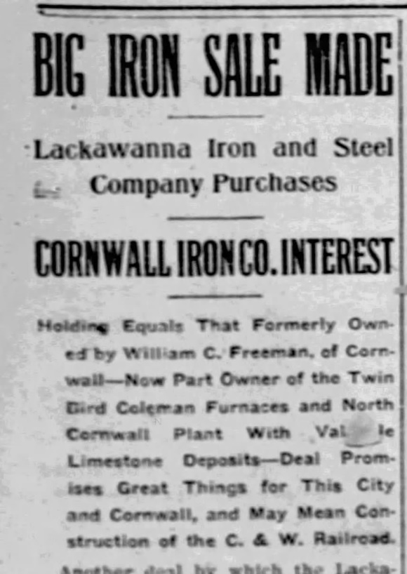 In 1901 the furnaces were still known as “Bird Coleman” when Wm. C. Freeman sold them to the Lackawanna Steel Company.