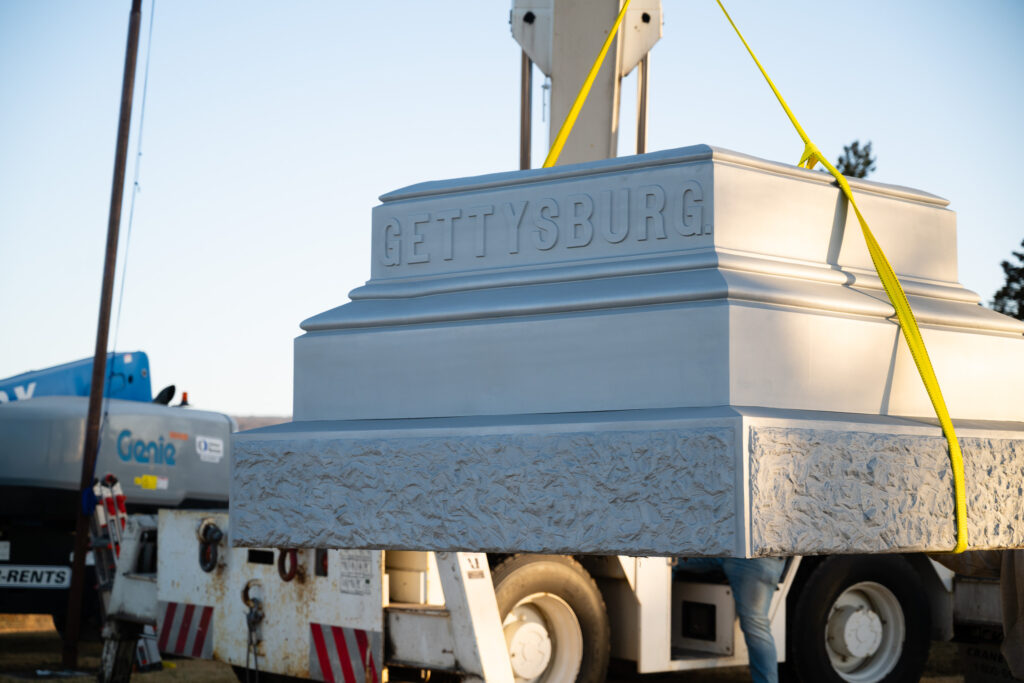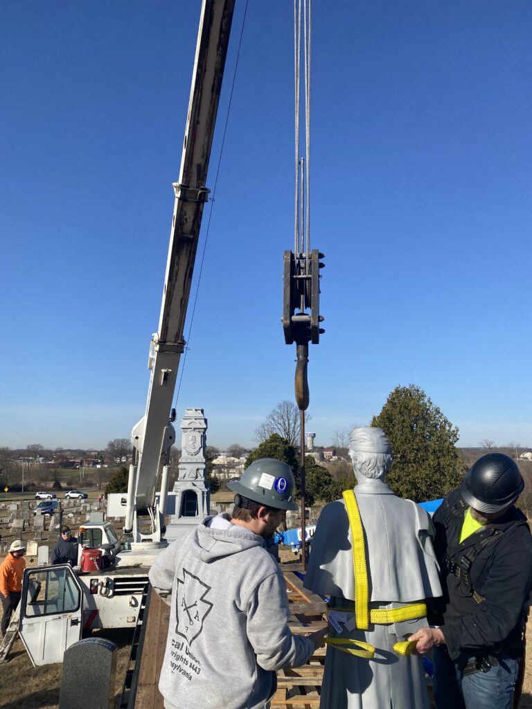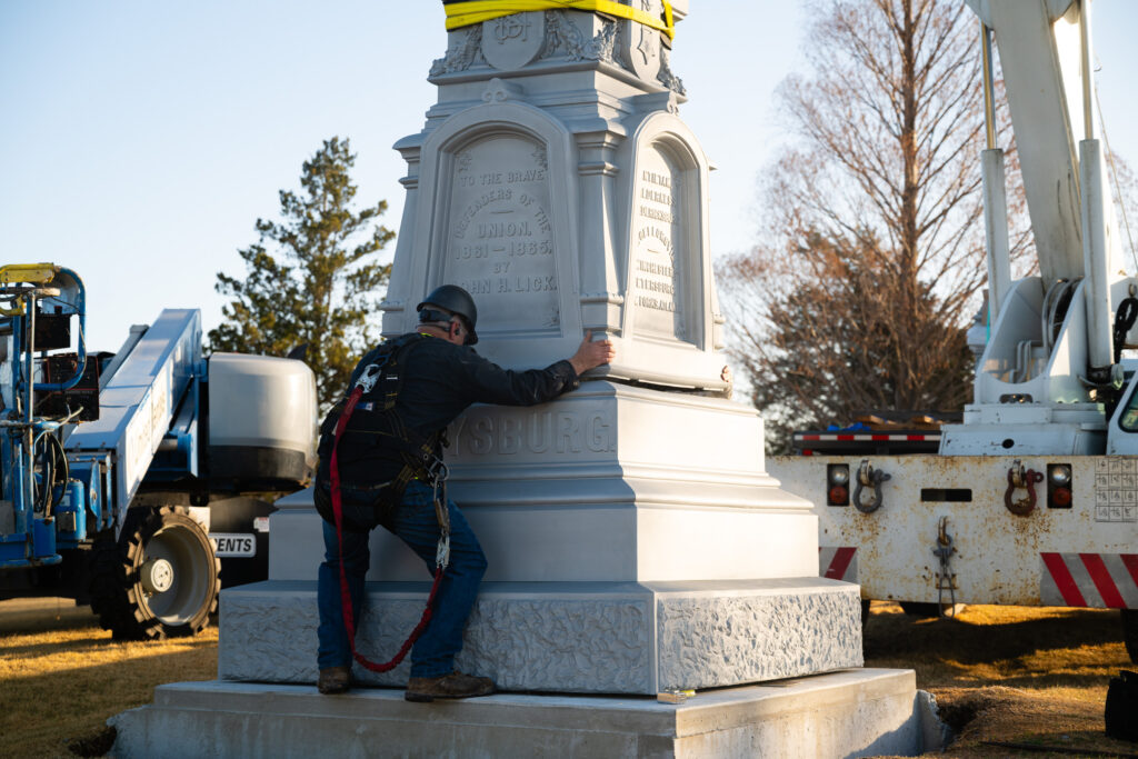 Disassembled in October for restoration by Lebanon-based E&E Fabrication Inc., the monument, first erected in 1884, was re-installed in about four hours on a warm and cloudless day in March.