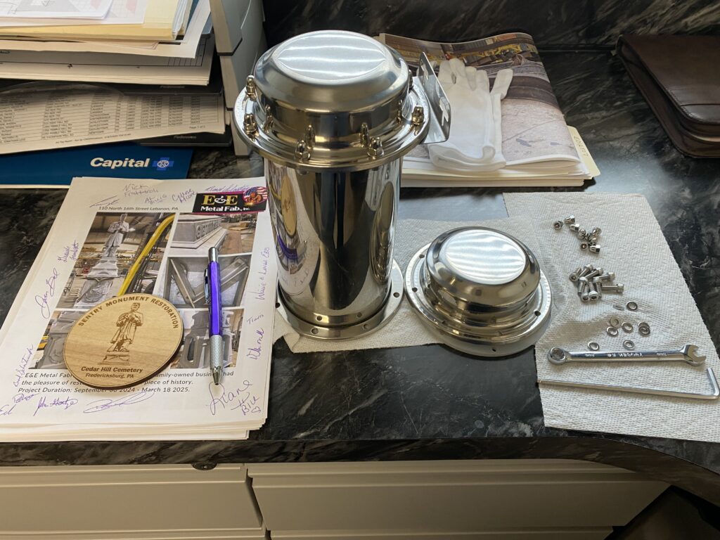 Billig noted that workers need to finish bolting down the base and clean up the finish. Additionally, there’s a plan to insert a time capsule within the monument before the access door is reattached.