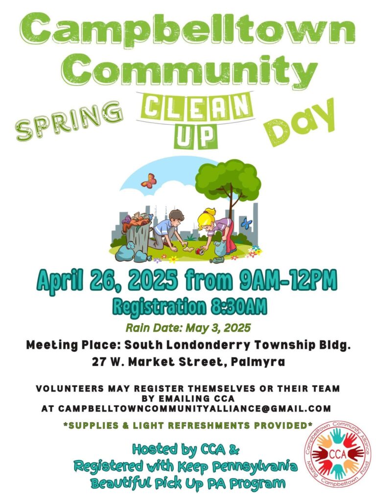 - Campbelltown Community Alliance’s annual Spring Clean Up event will be held on Saturday, April 26, from 9 a.m. to 12 p.m. Participants will meet at the township building.