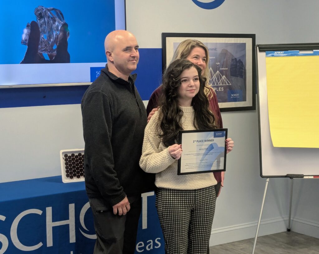 ELCO sophomore Adelina Wolfe, who placed first nationwide, was honored Tuesday at Lebanon’s SCHOTT Pharma and given a tour of the facility alongside her parents and school representatives.
