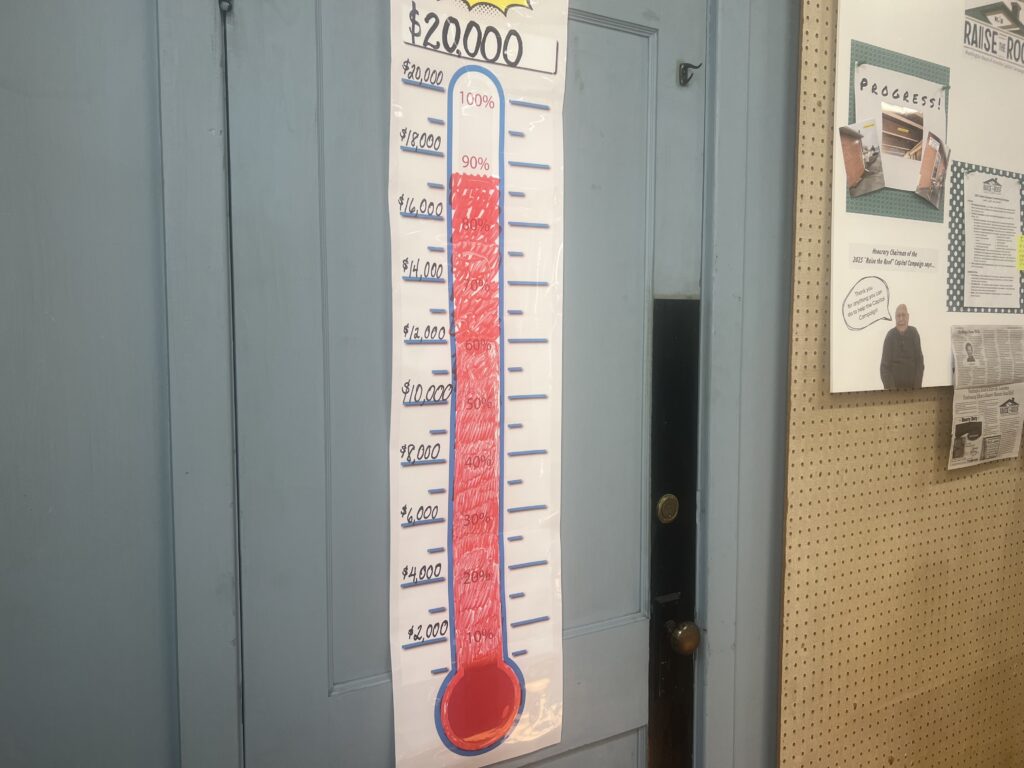 Diane Quinn, a percussionist in the band, said they have plenty more thermometers to fill out, marking how close they are to their goal.