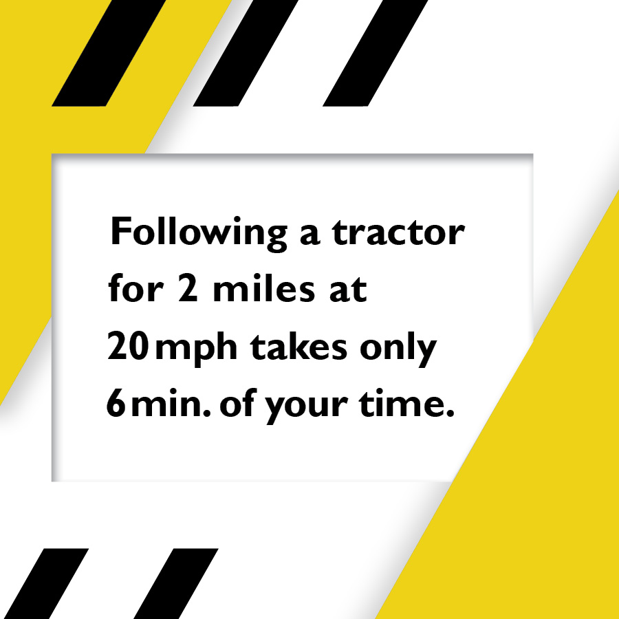 Don’t forget to reduce your speed when driving on roads where you might encounter large farm machinery. Also make sure to slow down immediately when you see the Slow-Moving Vehicle (SMV) emblem, which is an orange triangle with a red border, attached to farm vehicles.
