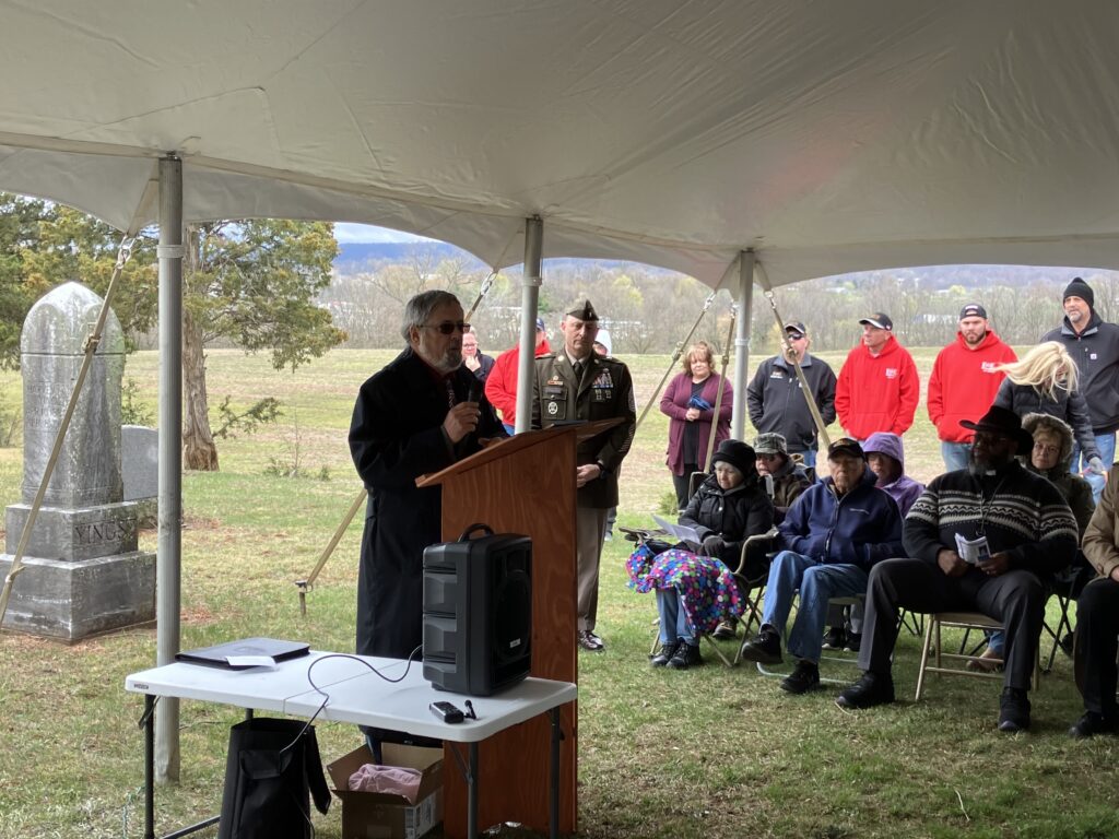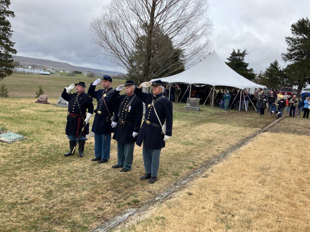 On Saturday, April 12, about 100 people came to remember veterans who fought to preserve the Union during a rededication ceremony at Cedar Hill Cemetery in Fredericksburg of the nearly 141-year-old Union sentry monument.