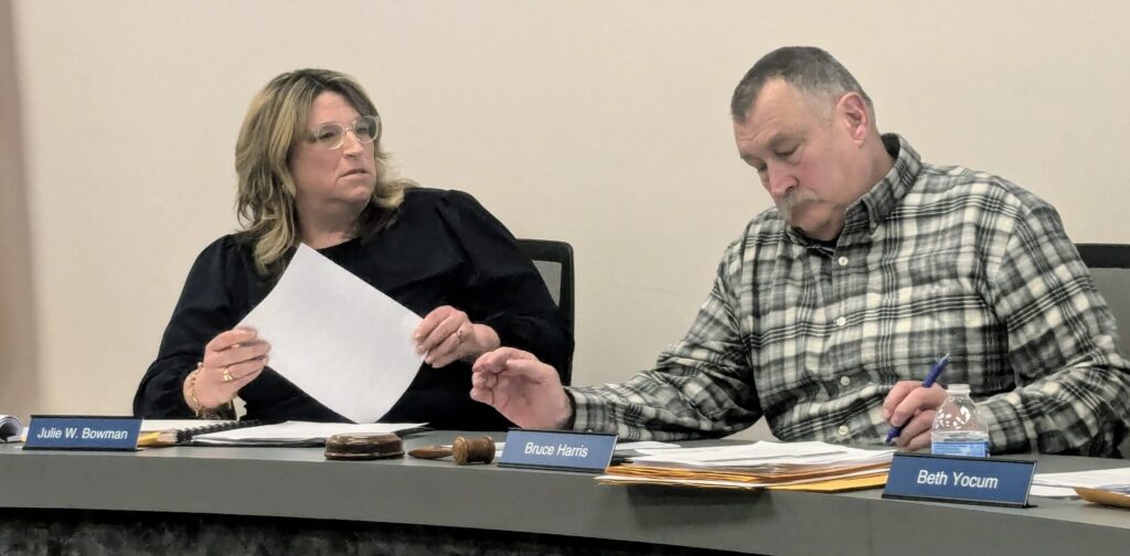 According to the minutes of the April 8 reorganization meeting, Bowman was appointed by a 4-2 vote, with Bruce Conrad, Thomas Burton, Beth Yocum, and Bruce Harris in favor and John Karinch and Nathan Walmer opposed. Yocum made the motion to appoint Bowman, seconded by Burton.
