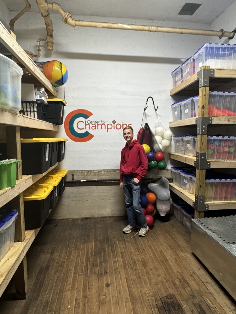 Jeff Bruce, executive director of Center for Champions, said the closet stores all the gear used by the mentors with local youths, adding that the unit was a mess when Drasher enquired what he could do for his Eagle Scout project.