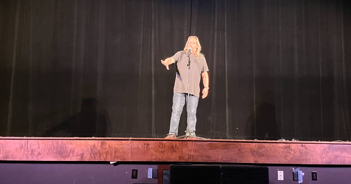 Former Lebanon city mayoral candidate Scott Church held a spoken word event about politics at the Allen Theatre in Annville on Tuesday.