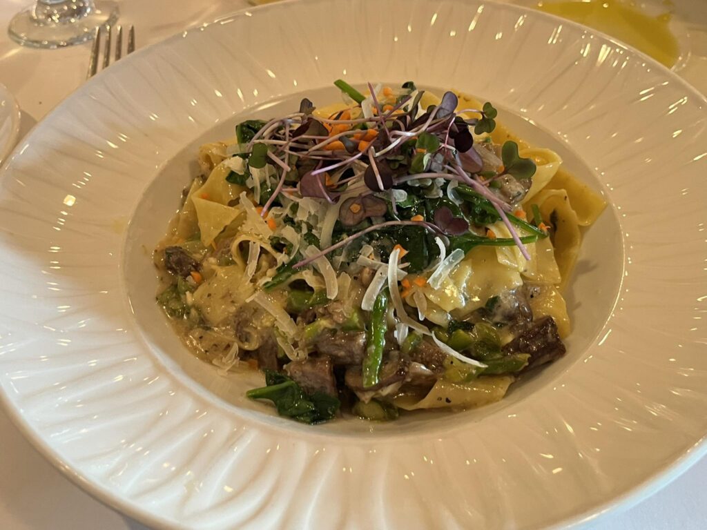 The pappardelle & beef comes with mushrooms, asparagus, spinach in an herb butter sauce. This dish is hearty with numerous chunks of beef and plentiful amounts of mushrooms. The addition of asparagus adds a fresh, vibrant contrast—cutting through the richness with just the right touch of green. It’s a beautifully balanced dish: savory, buttery, and bursting with deep, umami flavor.