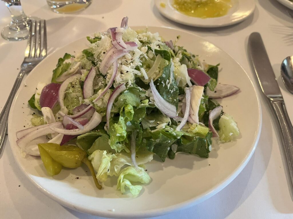 Our selections for judgement this evening were Spaghetti & Shrimp ($27) and Pappardelle & Beef ($26). The meals come with a large house salad and bread.