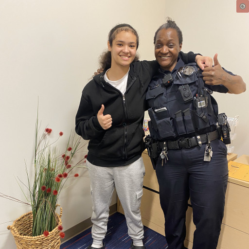 Pictured below is “Big in Blue Officer” Christina “Tina” Day and “Little Sister” Mia. Mia is an 8th-grade student and wants to be a police officer, just like her new “Big Sister.”