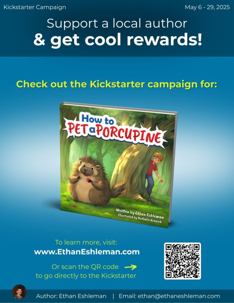 About a year ago, Eshleman was brainstorming ideas for a how-to book when the title, How to Pet a Porcupine, popped into his head. Over the span of a few days, he completed the first draft of what will be his debut children’s book.