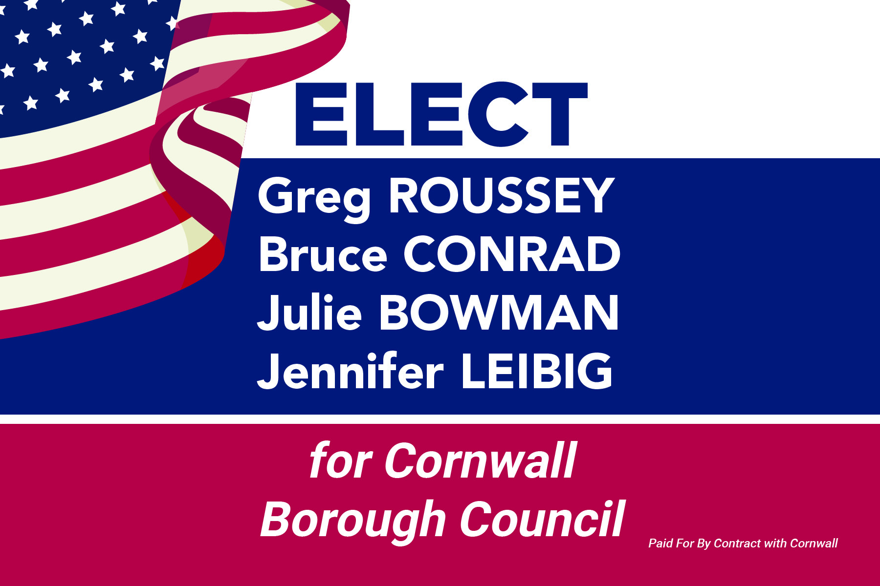 We’ve developed a Contract With Cornwall (see the video on our website, contractwithcornwall.com) which outlines our positions on the major issues facing Cornwall Borough.