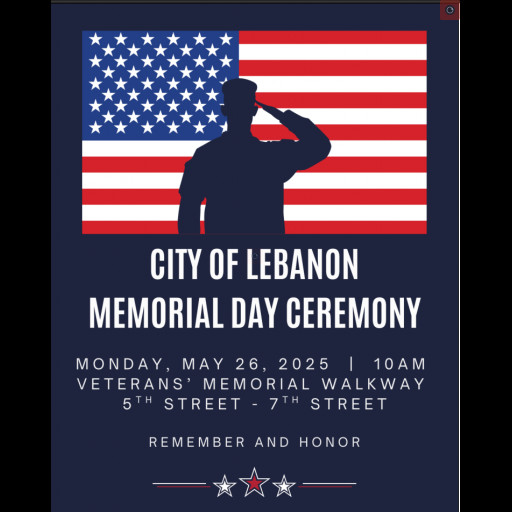 Veterans’ Memorial Walkway – The City of Lebanon invites residents to a special ceremony on Monday, May 26, at 10 a.m., to rededicate the Veterans’ Memorial Walkway — a space that honors the courage and sacrifice of U.S. veterans. The ceremony will include the singing of the National Anthem and other commemorative moments.