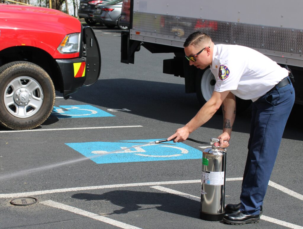 A necessary step is to educate each resident on using the fire extinguisher in an emergency. For this reason, Lebanon City Fire Chief Aaron “AJ” Sweitzer conducted a recent workshop for residents of Poplar Terrace.