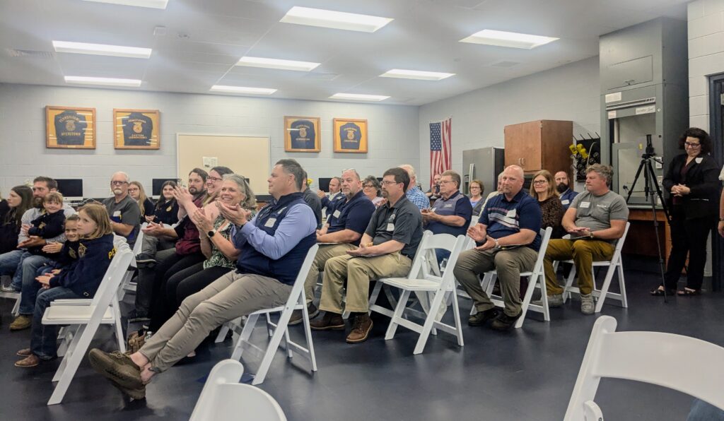 Young kids wearing FFA jackets came forward one by one to address a classroom full of local business representatives, politicians, and family to repeat the sentiment.