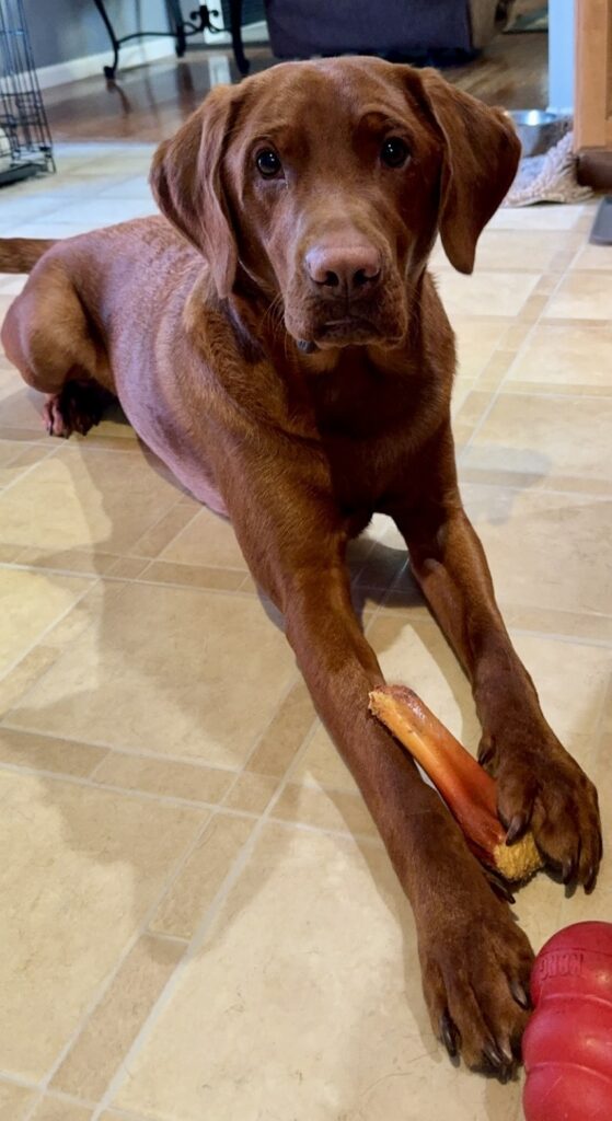 “Murphy joined our family when he was 8 weeks old. He is your typical lab who always wants to be with his people, always at your feet following you around or on your lap, thinking he’s a lap dog,” Kelly says. “He is just the best dog and a very special part of our family.”