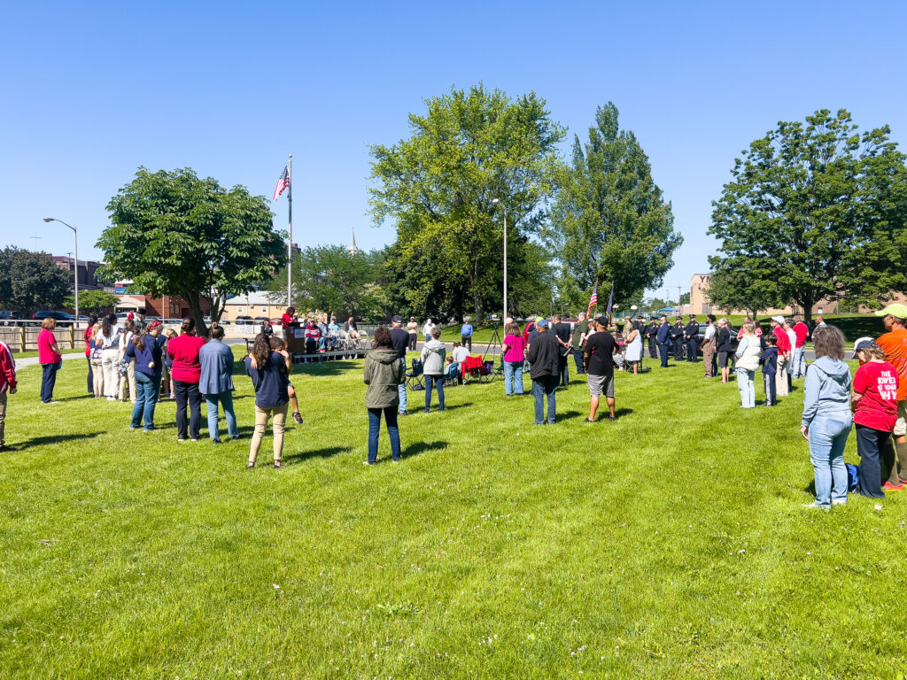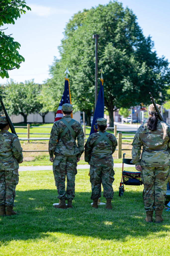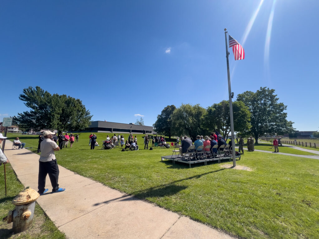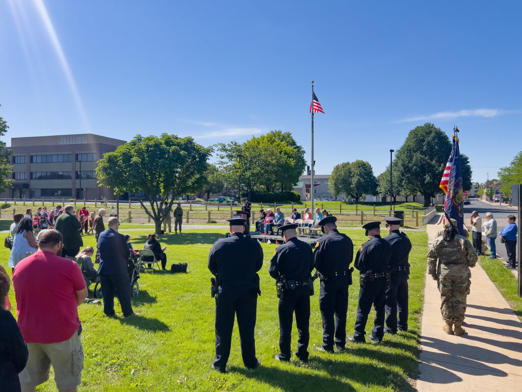 Members of the community, government representatives, veterans, and police gathered for a ribbon cutting, as well as ceremonies honoring the United States and its military.