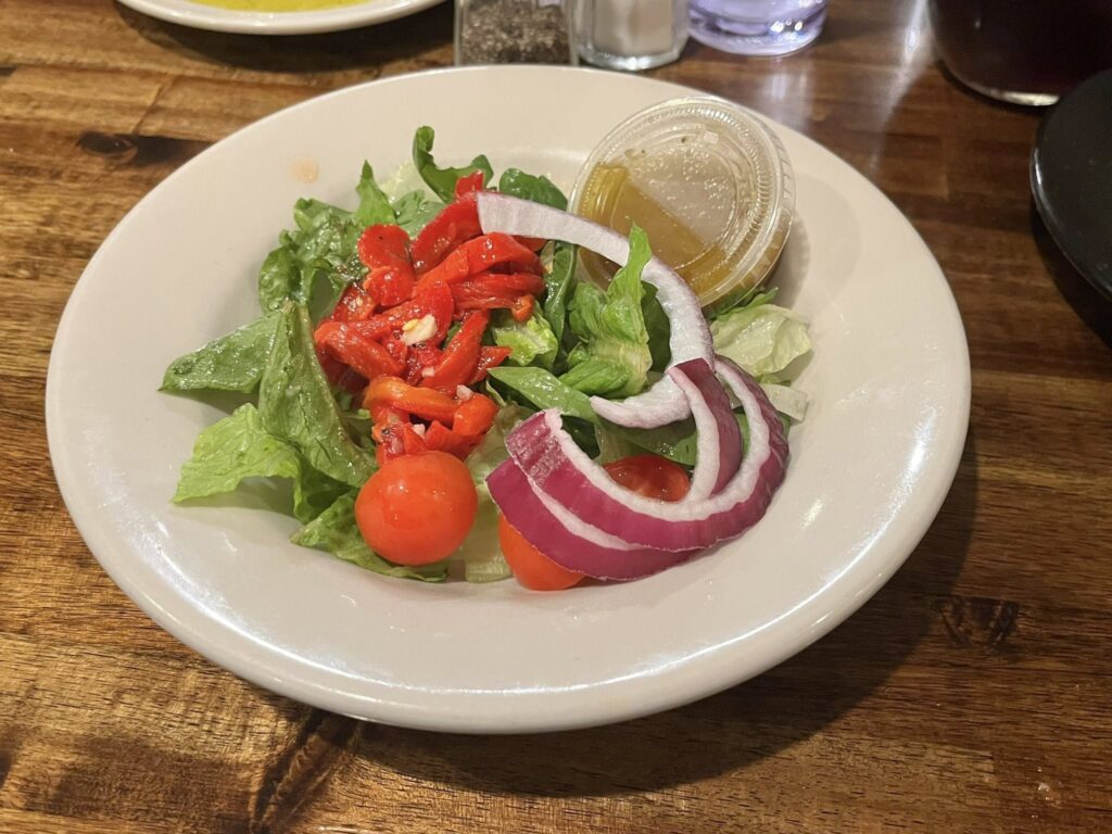 Our selection for judgement this evening was Eggplant Rollatini ($19) and Rigatoni Vodka ($17). The meal comes with a choice of house salad or soup and bread.