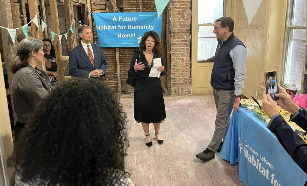 The event included a tour of the Walnut Street rehabilitation site, as well as a blessing from Pastor Robin Morgan of St. Andrews Presbyterian Church and remarks from local leaders including city Mayor Sherry Capello and Habitat president and CEO Andrew Szalay. Lebanon County Commissioner Bob Phillips, architect Charlie Yohe of Yohe Architecture + Design, Habitat’s director of family services Allyson Davis, and Habitat’s director of construction Andy Joseph were also on hand, as was Estefanye Morales, the eventual homebuyer of the Walnut Street property.